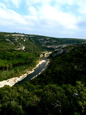 Today, we ran the Trail de la Baume, in Poulx (south of France), first time for this 18 miles race (3000 ft climb), near the Gardon cliff. A very nice path in the scrubs, and a little technical (a trail runner fell down badly, has been evacuated by helicopter). The scenery needed sometimes to stop and look around… Near this place was made the movie Wages of Fear with Yves Montand in 1952, where his truck has an accident, falling in the precipice.