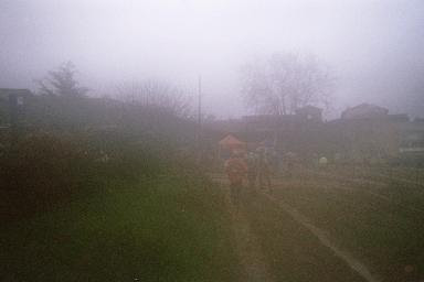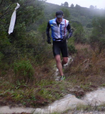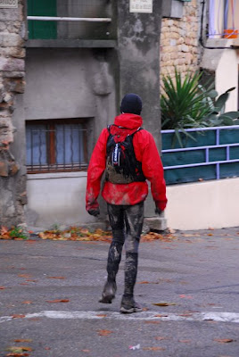 C’est une phrase que j’ai pu lire sur le site de la course. C’était peut-être vrai, mais jusqu’à l’année dernière. Car les conditions d’aujourd’hui étaient DANTESQUES ! Une petite pluie tombant sans discontinuer toute la journée… Bon ce n’est pas vraiment un problème. Mais les soucis ne venaient pas d’en haut mais… d’en bas ! 32 kilomètres de boue bien épaisse, bien profonde, bien collante, bien glaiseuse… et bien glissante. J’ai vite arrêté de compter les grosses gamelles autour de moi. D’autant plus que le trail se situe dans un pays de collines que l’on gravit et redescend aussitôt, par des descentes courtes mais très pentues… Toboggan assuré pour ceux qui ne font pas de ski !