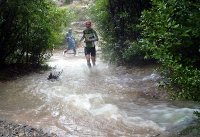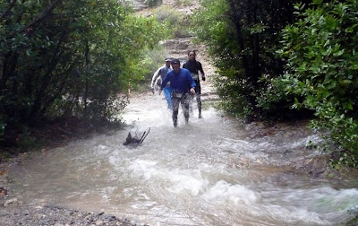 Mais ce n’est pas tout. La plupart du temps les sentiers serpentent en fond de vallée. Je me suis toujours demandé QUI les entretenait. Maintenant je sais. C’est l’eau. Ce ne sont pas des sentiers pour les bêtes mais des chemins créés et empruntés par des milliers de tonnes de flotte qui dévalent des collines et s’engouffrent là-dedans… On a pataugé plus de 3 heures (enfin pour moi) dans une eau à 2 degrés, au mieux jusqu’à la cheville, au pire jusqu’aux cuisses.