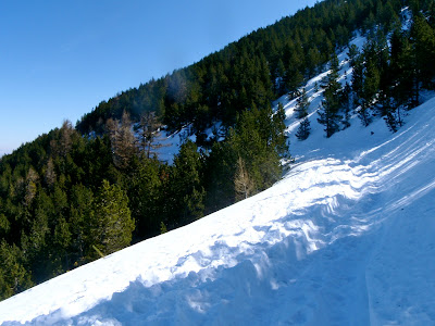 Une neige que les températures printanières des derniers jours aura fait fondre, mais que les dernières gelées nocturnes auront saisi. Je préfère cette neige dure que m’enfoncer jusqu’aux genoux.