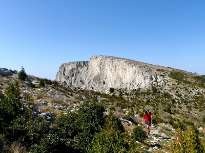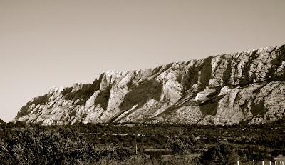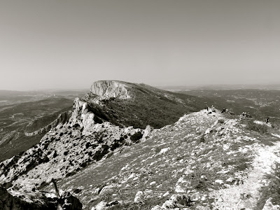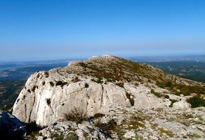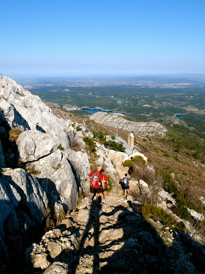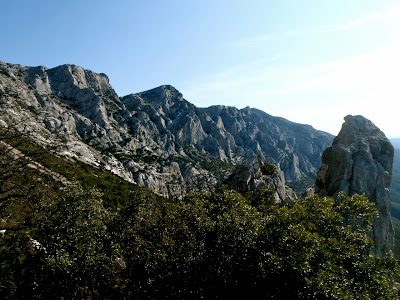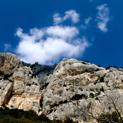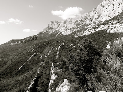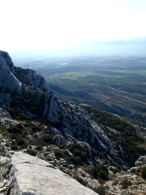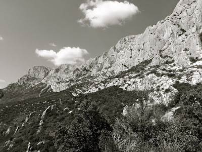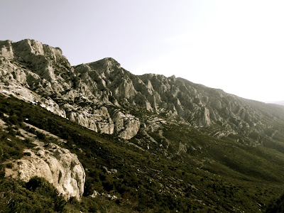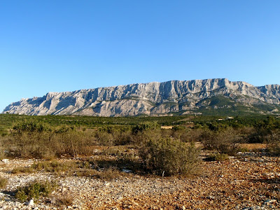 La Sainte Victoire. Depuis le temps que je passais à ses pieds, sans jamais y être monté… Ce n’est pas qu’elle est très imposante, puisqu’elle culmine à 1000 et quelques mètres, sur une vingtaine de km de long… mais elle en impose par sa façon de se dresser sur le pays d’Aix : une falaise abrupte de calcaire qui semble dire : « On ne passe pas. »