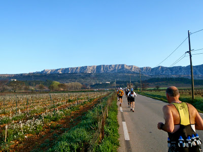 Et ça repart, encore une fois une relance très difficile. Un petit rythme constant, je reprends quelques concurrents. « 80ème » me dit un bénévole. Quelques kilomètres dans les vignes, et on revient vers cette Sainte Victoire qu’il va falloir gravir une troisième fois…