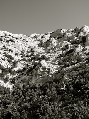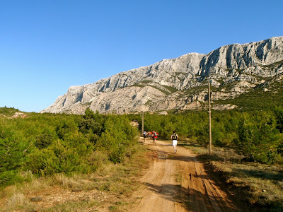 Après avoir zigzagué sur le plateau, toisés par la Sainte Victoire, comme si on cherchait un chemin d’accès, on s’approche doucement des premiers contreforts.