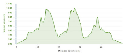 Une longue descente vers le premier ravito, où tout le monde refera le plein d’eau, car au bout de 20km à peine les réserves sont vides ! Un petit sandwich au fromage, du coca, des bananes, et hop ! c’est reparti. 4min chrono. La relance sera assez difficile, au sein de la pinède, sur un faux-plat montant où il faudra maintenir un rythme assez constant, sans pour autant trop entamer les réserves avant la remontée. Car, bien sûr, il faudra remonter là-haut, sur le sommet de la montagne…