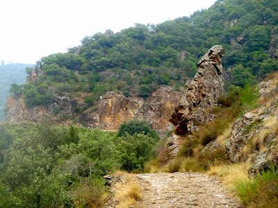 Bref, en ce petit matin pluvieux, je pars de l’Arénas sur la rive droite du Gardon de St Jean et attaque la montée du Serre de Cartaou en longeant la Vallée Obscure (on se croirait dans le Seigneur des Anneaux avec ces noms). Une piste régulière monte pendant une bonne demi-heure jusqu’au Col de Briontet.