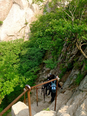 Et on arrive vite à une sorte de temple, dont je n’ai pas saisi le nom (le Coréen n’est pas mon fort), mais dont l’ambiance était très impressionnante, car un moine faisait sonner à intervalle régulier une énorme cloche de bronze.