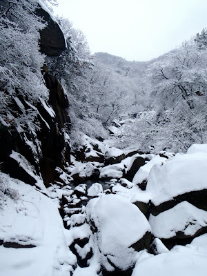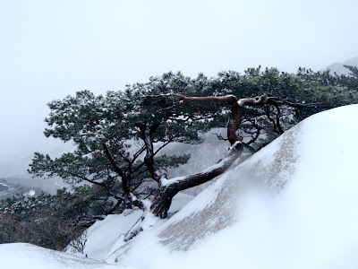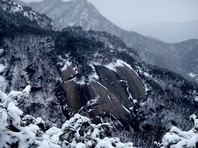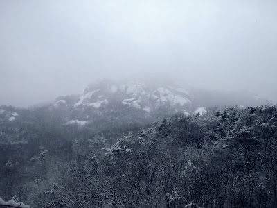 Séoul. Corée du Sud. Une tempête de neige s’abat sur la ville. J’avais planifié depuis longtemps cette sortie, dont le but était la traversée totale des deux parcs nationaux, Bukhansan et Dobongsan.