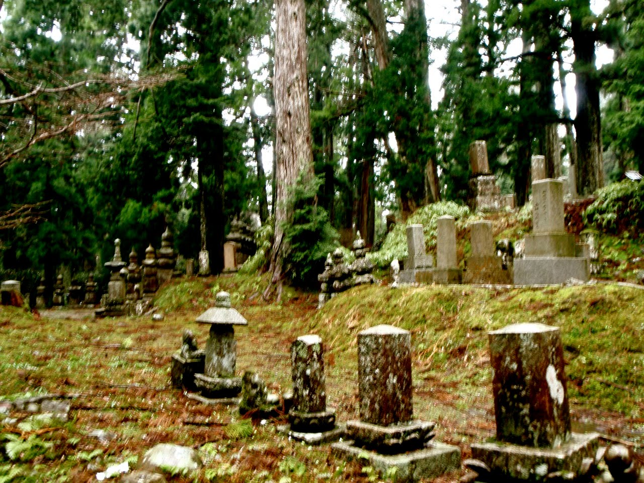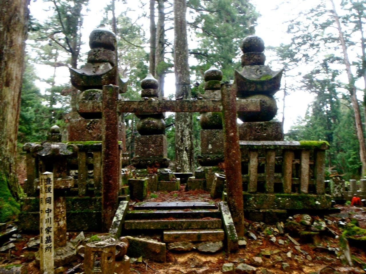 Le cimetière est immense. En son coeur se trouve le Tōrō-dō, le temple des lanternes, où des flammes brûlent sans interruption depuis un millier d'années. A côté, le mausolée de Kūkai, moine fondateur de Kōyasan.