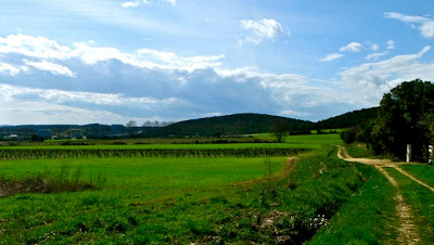 Je contourne la colline du Dève, par les champs et le village au drôle de nom de Bézut.