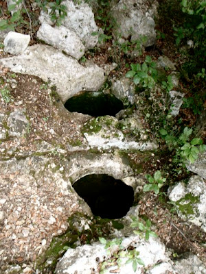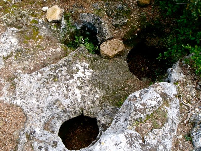 Je quitte les lieux, les laissant à leur paix méritée. En remontant la pente, je remonte également un peu plus le Temps car j’arrive à l’époque romaine : dans la roche sont creusés des silos, pour conserver au frais et à l’abri de la lumière des grains ou autres aliments.