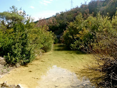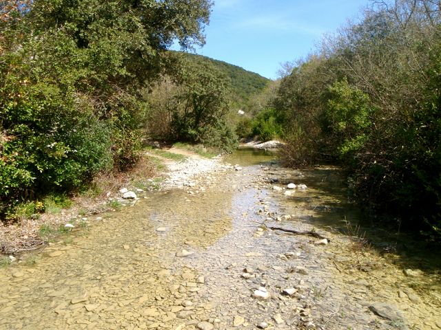 Puis, en s’enfonçant dans les collines, j’ai commencé à prendre la mesure des pluies tombées les jours précédents… Le sentier disparaît complètement, par endroits, avalé littéralement par une petite rivière.