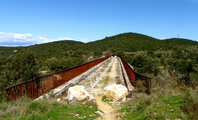 Départ du petit village pittoresque d’Euzet, dans le Gard. Direction l’ouest, vers le Mas Champion et son pont.