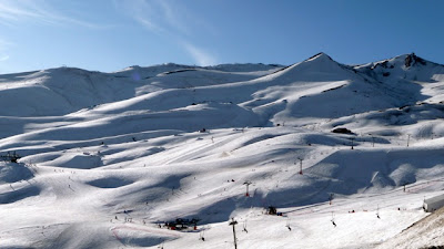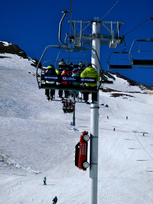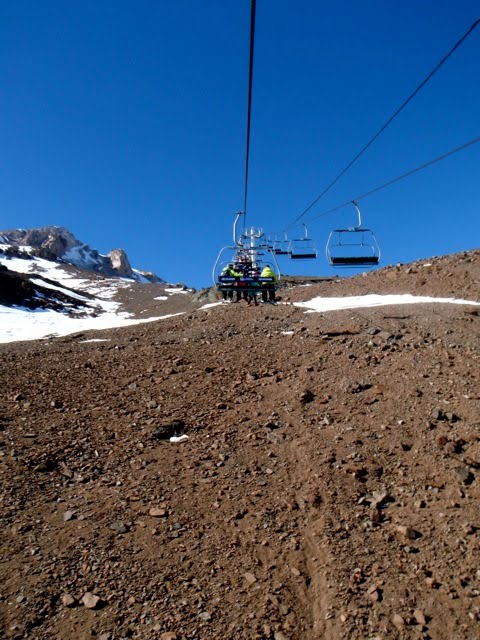 On passera deux jours sur Valle Nevado et la Parva, les deux grosses stations de Santiago du Chili. Là-bas, c’est comme chez nous : les télésièges sont fournis par Poma, entreprise française. A quelques ajouts publicitaires près.