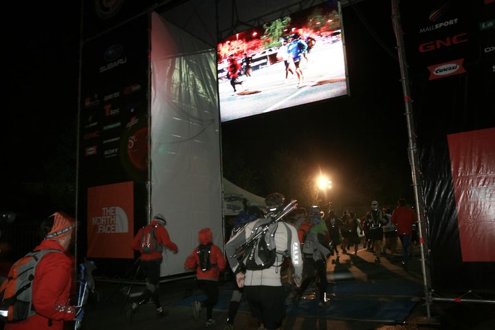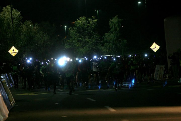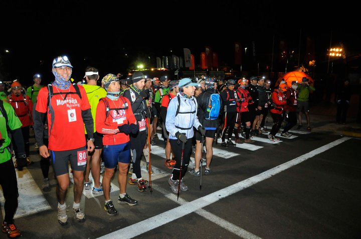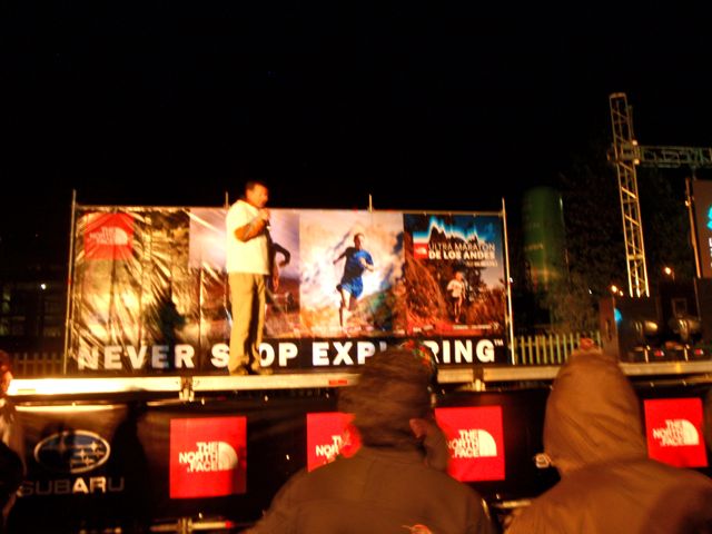 Minuit et demie, il y a déjà du monde. La course est organisée par The North Face, ça se voit, la marque est omniprésente et il y a des moyens conséquents. L’épreuve fait partie du North Face Endurance Challenge et regroupe un beau plateau de compétiteurs rassemblant plusieurs nations : Chili, Argentine, France, Etats-Unis, Colombie, Venezuela, Royaume-Uni… Sébastien Chaigneau, de North Face, est favori. Il remportera d’ailleurs l’épreuve en 7h29 main dans la main avec Gustavo Reyes de Patagonia, 3 minutes devant l’américain vainqueur 2009 de la Western States, Hal Koerner (et, accessoirement, 4h30 devant moi…)