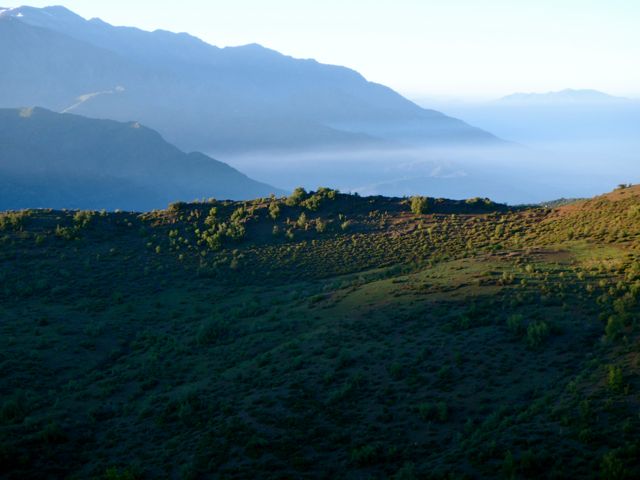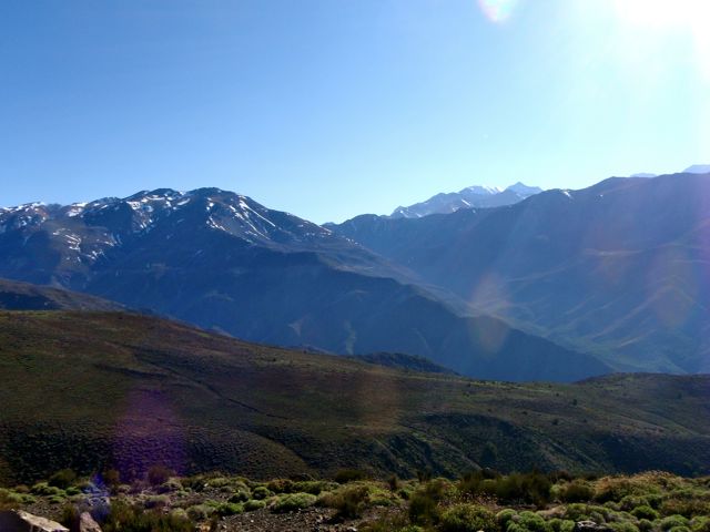 Le soleil est maintenant haut dans le ciel, dévoilant la Pré-Cordillère, et fait monter la température. Nous sommes vers 2200m d’altitude.