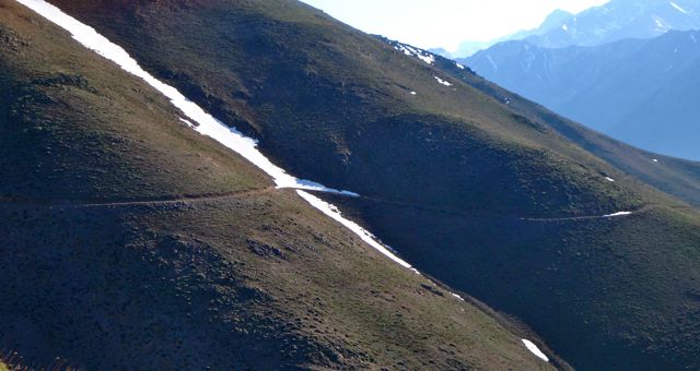 Il y a moins de neige que l’année précédente, mais on longe quelques restes de l’hiver (on est au printemps dans l’hémisphère sud !)