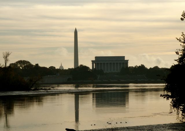 Quand j’ai eu écumé tous les sentiers de l’île, je retrouve la civilisation, et ses symboles : le Lincoln Memorial, le Washington Monument, et le Capitole (en arrière-plan).