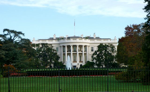 Passage rapide devant la Maison-Blanche, ouvrage en grès blanc terminé en 1800, qui, je ne l’apprends à personne, est le lieu de résidence et de travail des présidents américains…