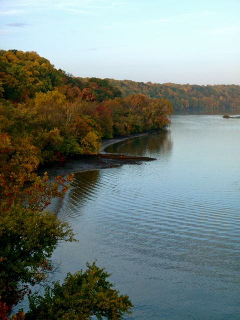 Je descends vers la rive du Potomac et Theodore Roosevelt Island, une île au milieu du fleuve abritant une réserve naturelle.