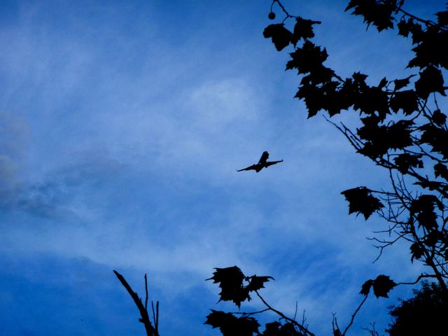 Au-dessus de la frondaison, dédaignant le monde végétal, au-delà des oiseaux piaillant et du bourdonnement des insectes, le vrombissement incessant d’un arthropode issu d’un autre monde. (Heu… mon monde, en fait !)