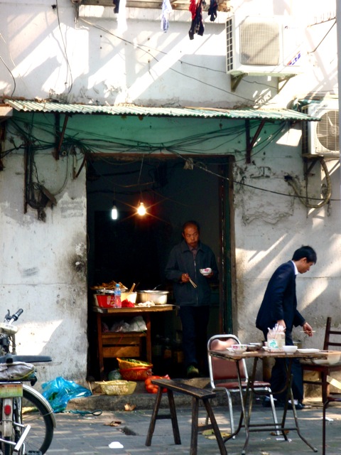 Je m’éloigne, autant que faire se peut, des flèches de verre et de métal, à la recherche d’une Chine plus authentique. Car à lever la tête on pourrait se trouver à New York, à Atlanta ou à Hong Kong que ça ne ferait pas de différence. Tâche difficile car les vieux quartiers ont quasiment tous été rasés.