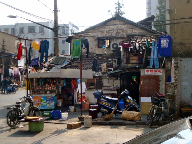 Le quartier est bien vite traversé : il n’en reste pas grand chose, les vieilles maisons sont encerclées par les géants de béton et avalées semaine après semaine. D’ici peu tout aura disparu, pas même une rue ne sera épargnée ne serait-ce que pour ne pas oublier. La Chine n’aime pas le vestige, qui lui rappelle peut-être de mauvais souvenirs. Il faut dire que l’essor de la ville s’est fait dans la douleur.