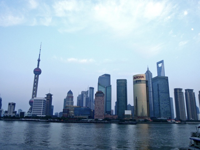 En face, de l’autre côté du Huangpu, le quartier financier de Pudong.