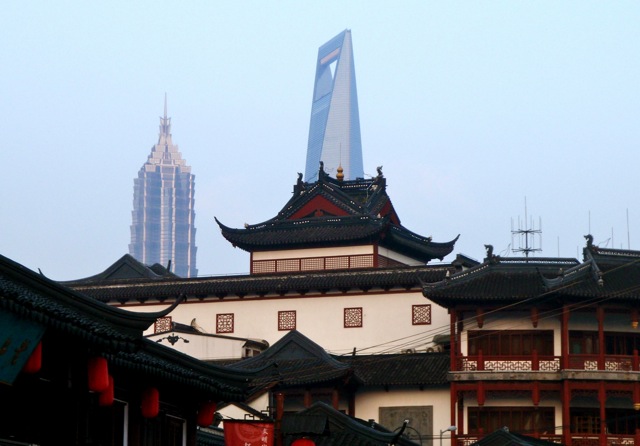 Et là encore, le monde moderne se rappelle à notre bon souvenir, histoire de ne jamais oublier où nous sommes, ou plutôt quand nous sommes. En arrière-plan, le « décapsuleur » (Shanghai World Financial Center) et la Jin Mao Tower.
