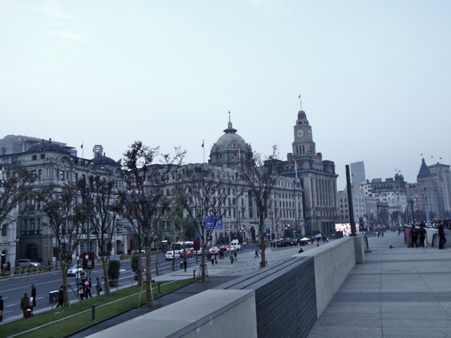 On arrive sur les rives de la rivière Huangpu. Autrement appelées le Bund.