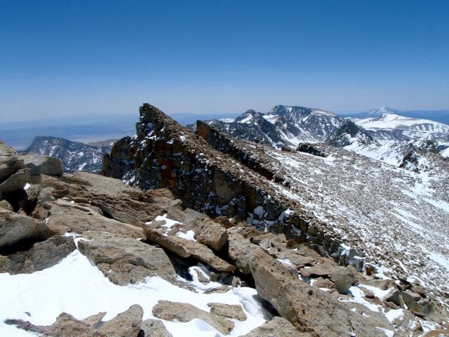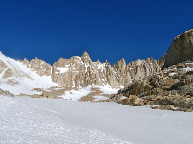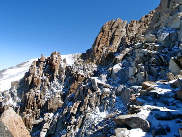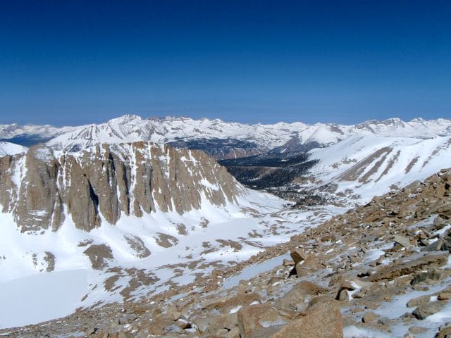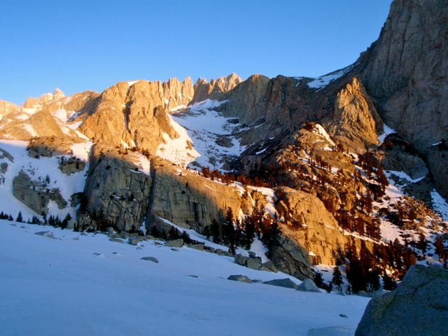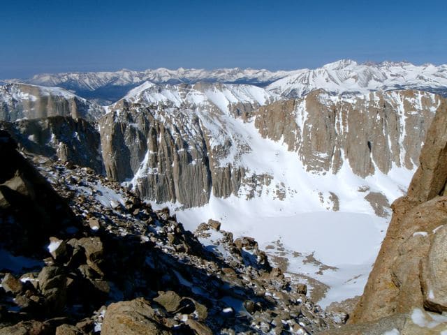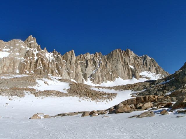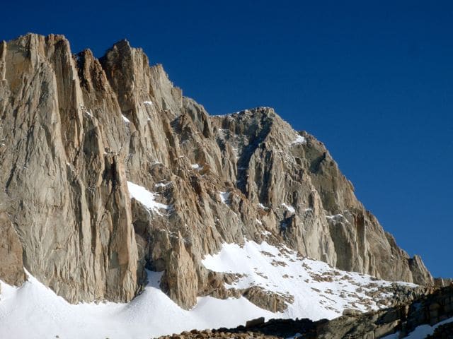 Le mont Whitney est le plus haut sommet des États-Unis, avec 4421m. Si son flanc ouest est en pente douce, il présente à l’Est des murailles de pierre qui paraissent infranchissables.