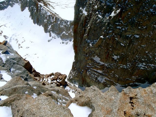 Un bloc bascule, et c’est une chute de 400m au bas du Keeler. Je distingue les deux alpinistes qui n’ont pas beaucoup avancé depuis tout à l’heure.