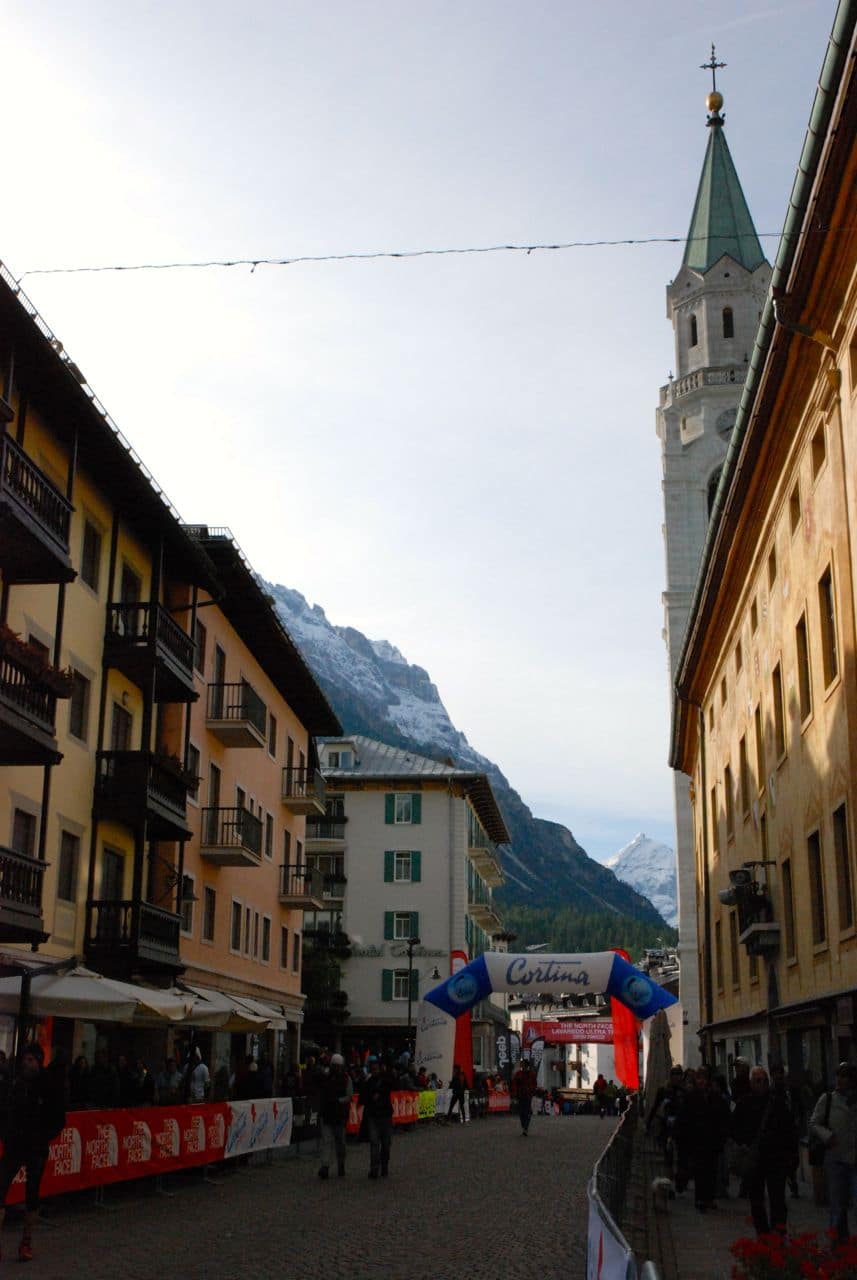 Je force l’allure dans les rues de Cortina sous les bravi des italiens (et des français : les supporters patriotes se sont surpassés sur tout le parcours !)