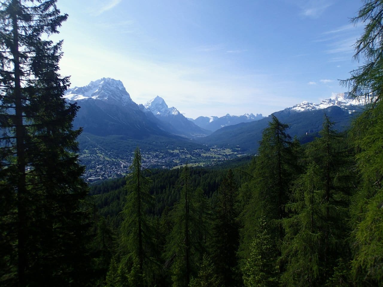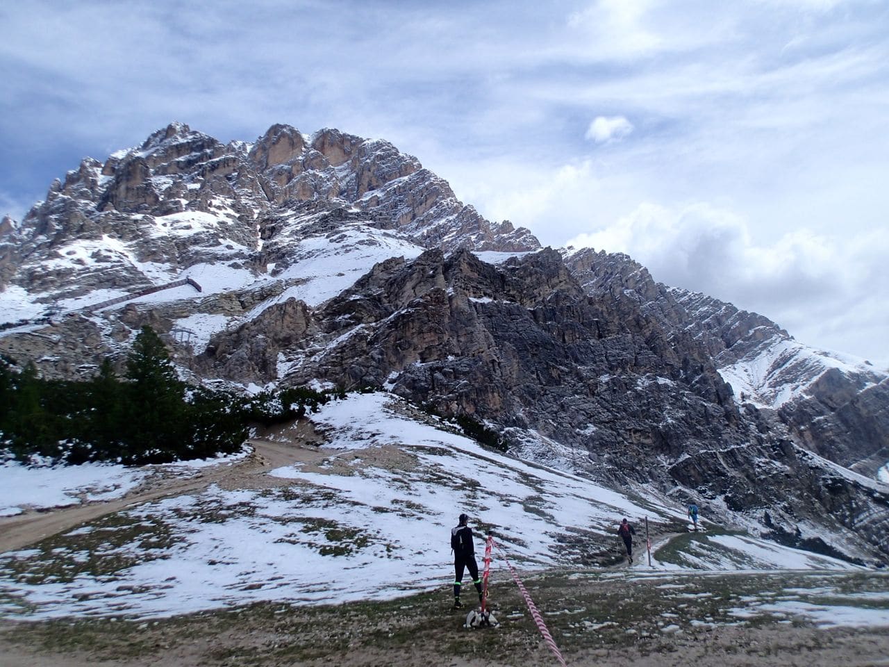 Puis on attaque la pente, sur les premiers contreforts du Tofana Di Mezzo. Derrière nous, Cortina d’Ampezzo et les 3200m du Punta Sorapiss.