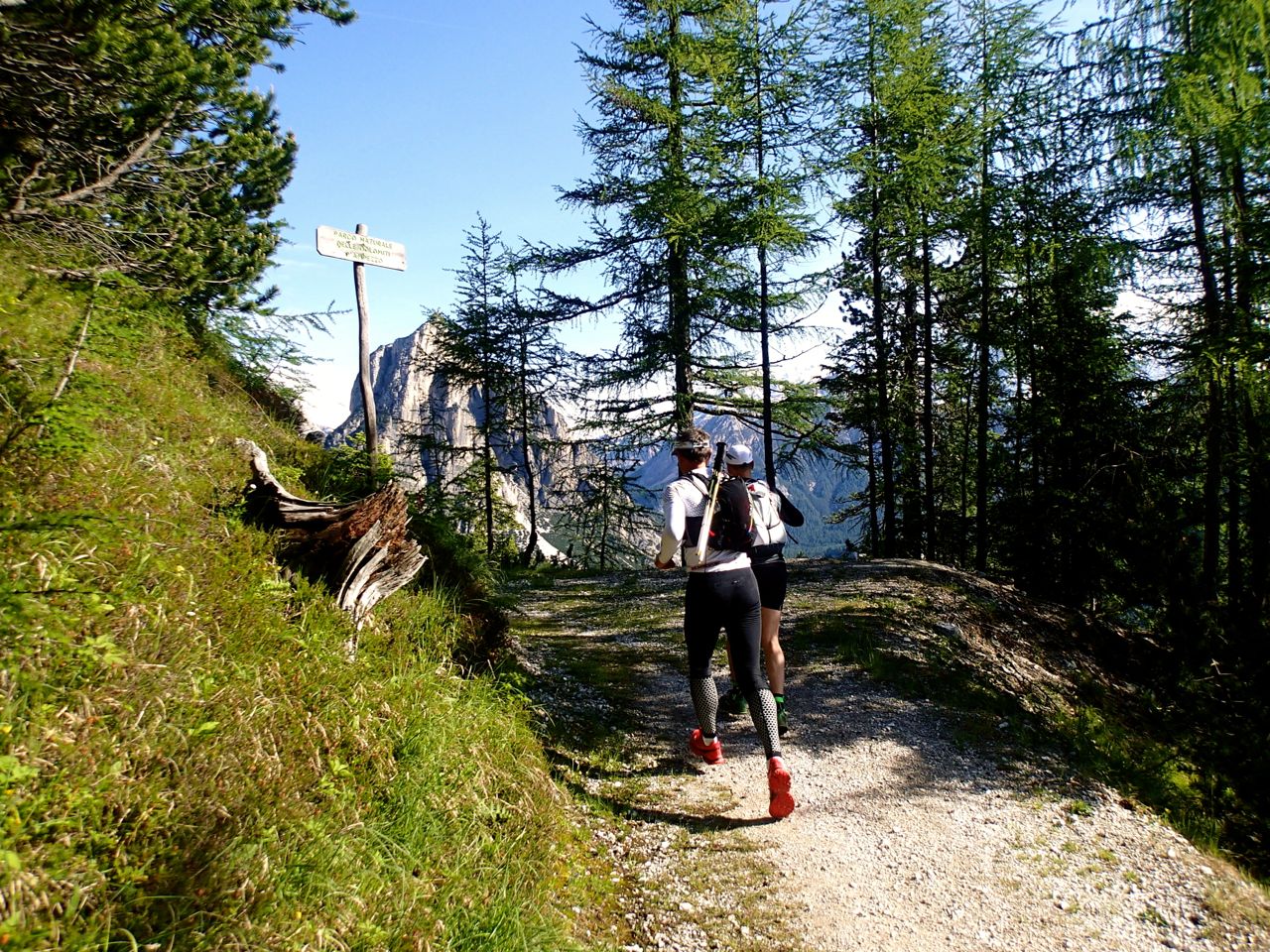 Et on retrouve le tracé des 15 premiers kilomètres de la course, à l’envers… Mes jambes ne se sont pas remises : plus habituées à grimper qu’à courir elles sont devenues douloureuses. Plus inquiétant : elles rechignent à descendre. Je ne m’entraîne plus dans les descentes il faut dire : d’une part je compte sur certaines facilités techniques, d’autre part j’économise mes genoux. Mais du coup, les quadriceps, peu familier à la contraction excentrique, sont endoloris. De même que mes articulations. Du coup, ma vitesse de descente est ridicule ! Les vingt coureurs laissés derrière moi à Malga Ra Stua ont tôt fait de me reprendre et de me mettre 20 ou 30 minutes dans la vue… Je trottine, à défaut de muscle, à la volonté. Je force l’allure car je voudrais arriver à Cortina avant la nuit, histoire de ne pas avoir à sortir ma frontale.