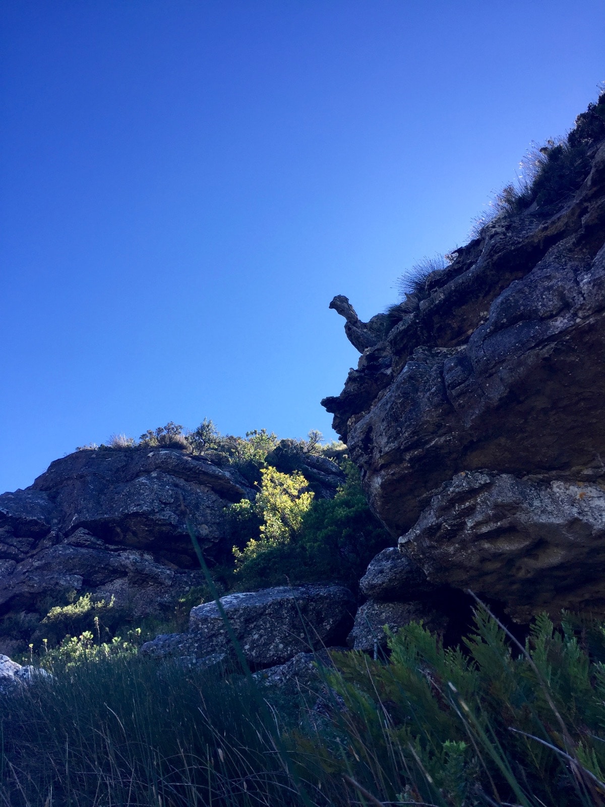 mais je préfère le quitter et escalader les rochers gardés par des gargouilles afrikaners, et passer dans Echo Valley.